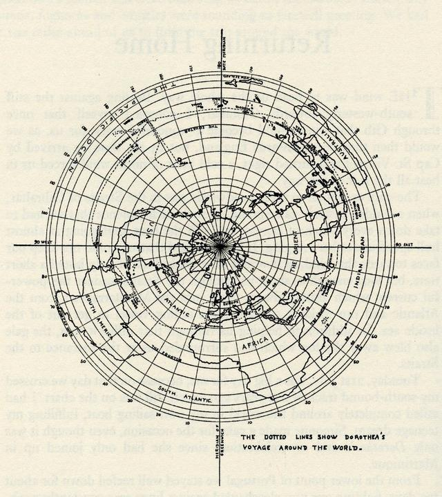 地图上的虚线显示了“多萝西娅”号环球航行的路线