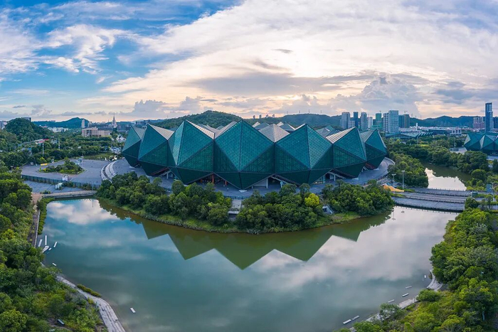 作为深圳文体地标——深圳大运中心体育馆极具现代建筑美学,成为电影“城市森林”画面的重要底色。这座以“水晶石”为造型的建筑,线条流畅、质感硬核。